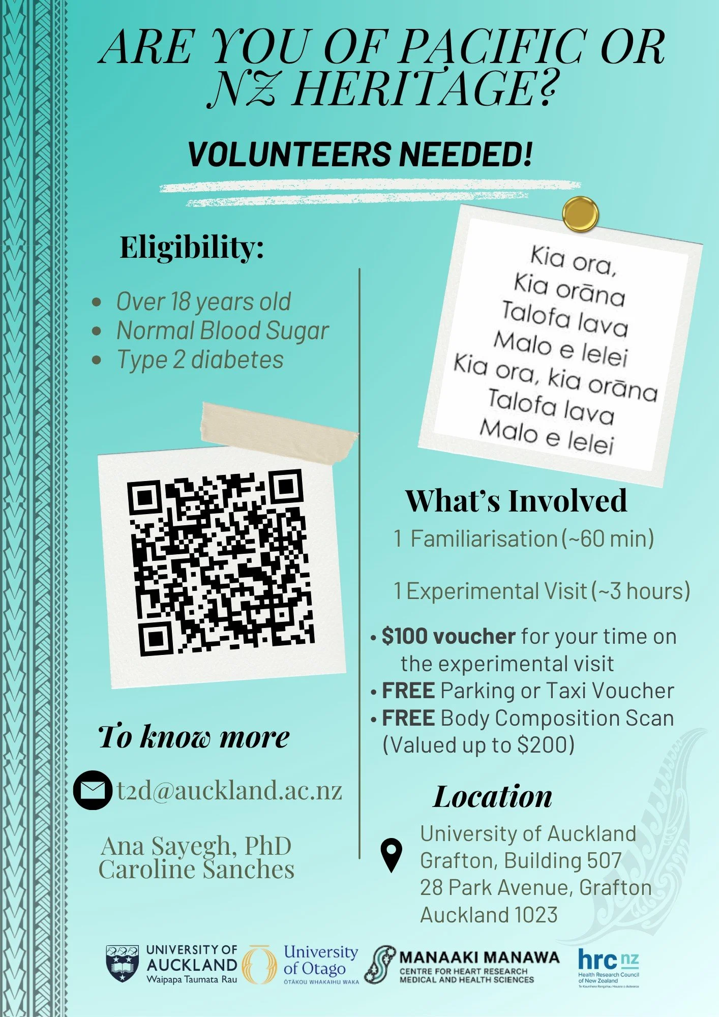 Contact: Ana Seyegh, PhD; Caroline Sanches t2d@auckland.ac.nz