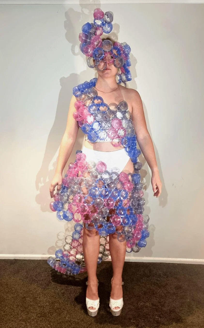 This year, Anna created Dia-beat-this (right), a garment made utilising insulin pump waste packaging from 500m of tubing and 300+ infusion sets.