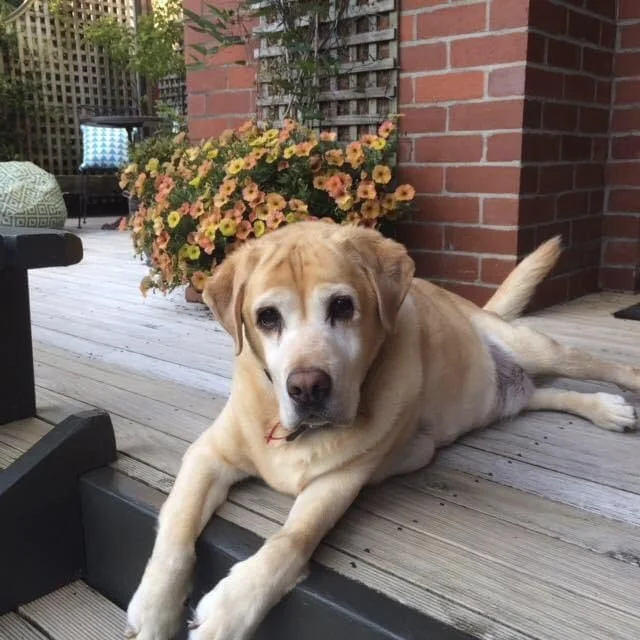 From left: Charlie, Mark, Sharon, Lily, and Jack. And their old labrador, Bruno.